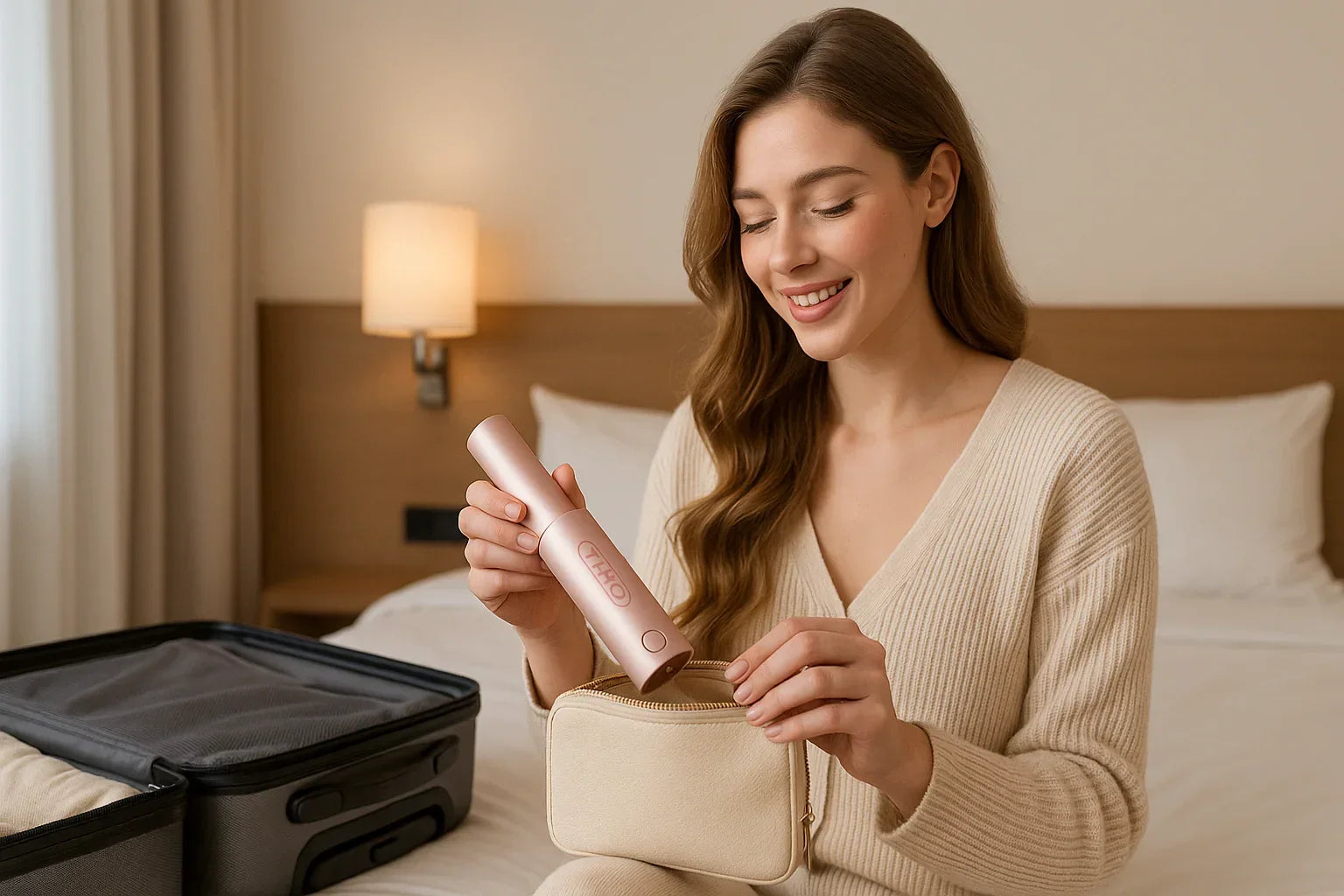 Absolutely. Its compact size and automatic shut-off feature make it perfect for trips or quick touch-ups anywhere.